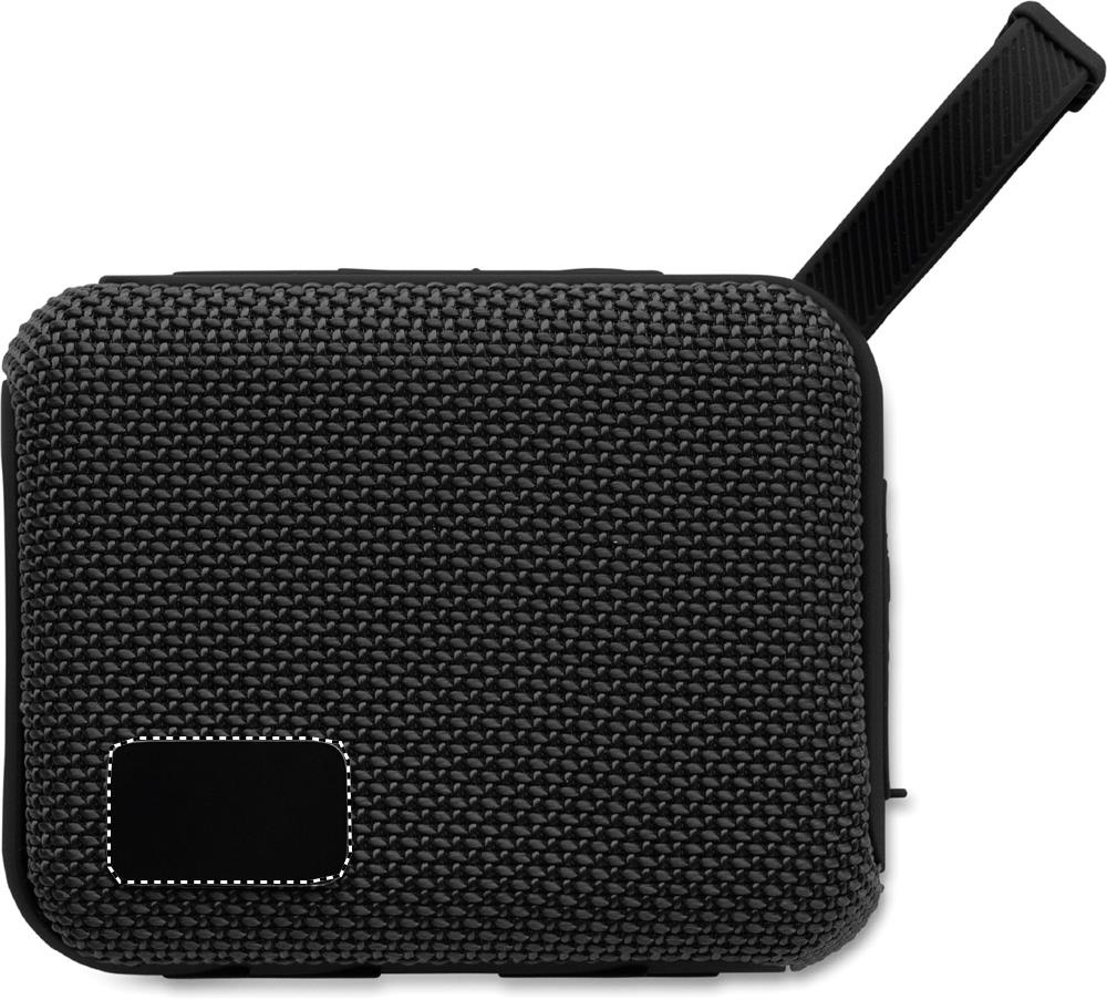 5.0 wireless Lautsprecher. ABS mit RPET-Gewebe. Schlaufe, SD-Kartenslot und AUX-/USB-Kabel. Inkl. wiederaufladbarer Li-ION-Akku mit 800 mAh. Ausgangsdaten: 5 W, 3 Ohm und 5 V. Spielzeit ca. 3 Stunden.