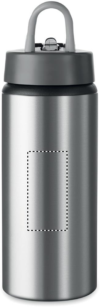 Einwandige Trinkflasche aus Aluminium. Klappbares Mundstück mit Trinkhalm und Aufhänger. Füllmenge: 600 ml.