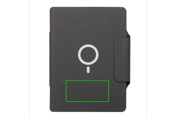 Laden Sie Ihr Mobilgerät drahtlos mit diesem A4-Notebook-Portfolio aus PU mit integriertem magnetischem kabellosem 10W-Ladegerät und 8.000 mAh Powerbank auf. Platzieren Sie Ihr Smartphone (iPhone 12 oder höher) an dem kabellosen Ladegerät an und Ihr Smartphone wird sich perfekt an den Magneten im Inneren ausrichten. Das kabellose 10-W-Ladegerät ist mit allen QI-Geräten (Iphone 8 und höher und Android-Geräte) kompatibel. Type-C-Input: 9V/2A ; Wireless-Output: 9V/1,1A; Type-C-Output: 9V/2A. Das Notizbuch enthält 20 Blatt/40 Seiten 80gr/m² liniertes Papier. Mit Handy-/Tablet-Tasche sowie Stiftschlaufe. 19 Stück hochwertige N52H hitzebeständige Magnete integriert. Registered design.