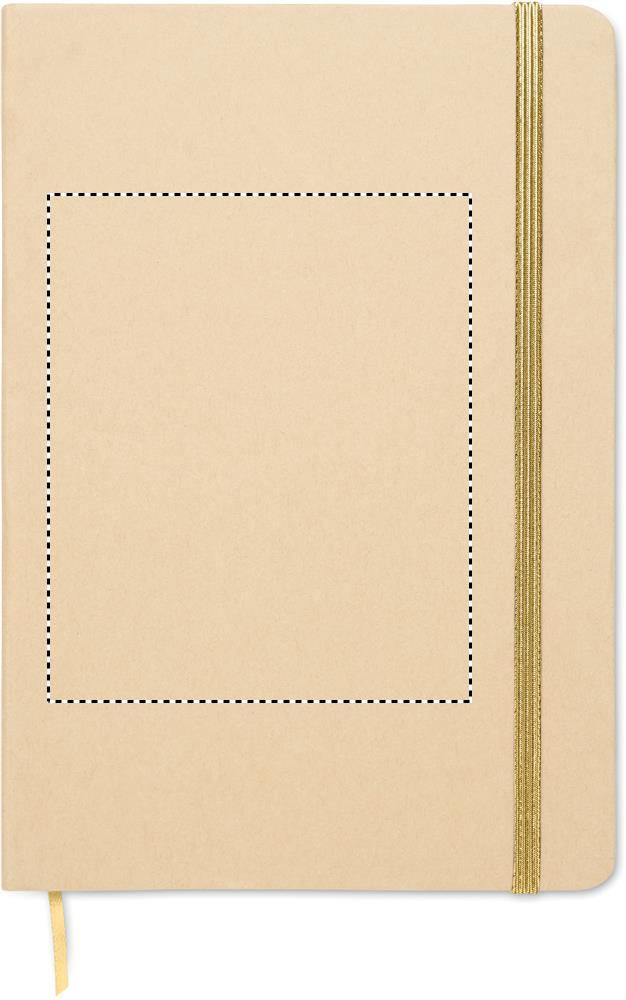 DIN A5 Notizbuch mit gebundenem Hard Cover aus recyceltem Karton. Beiges Cover. 80 Blatt (160 Seiten) liniertes Recyclingpapier. Nach der Gravur des Covers, wird die Farbe sichtbar. Farblich abgestimmtes elastisches Verschlussband und Lesebändchen.