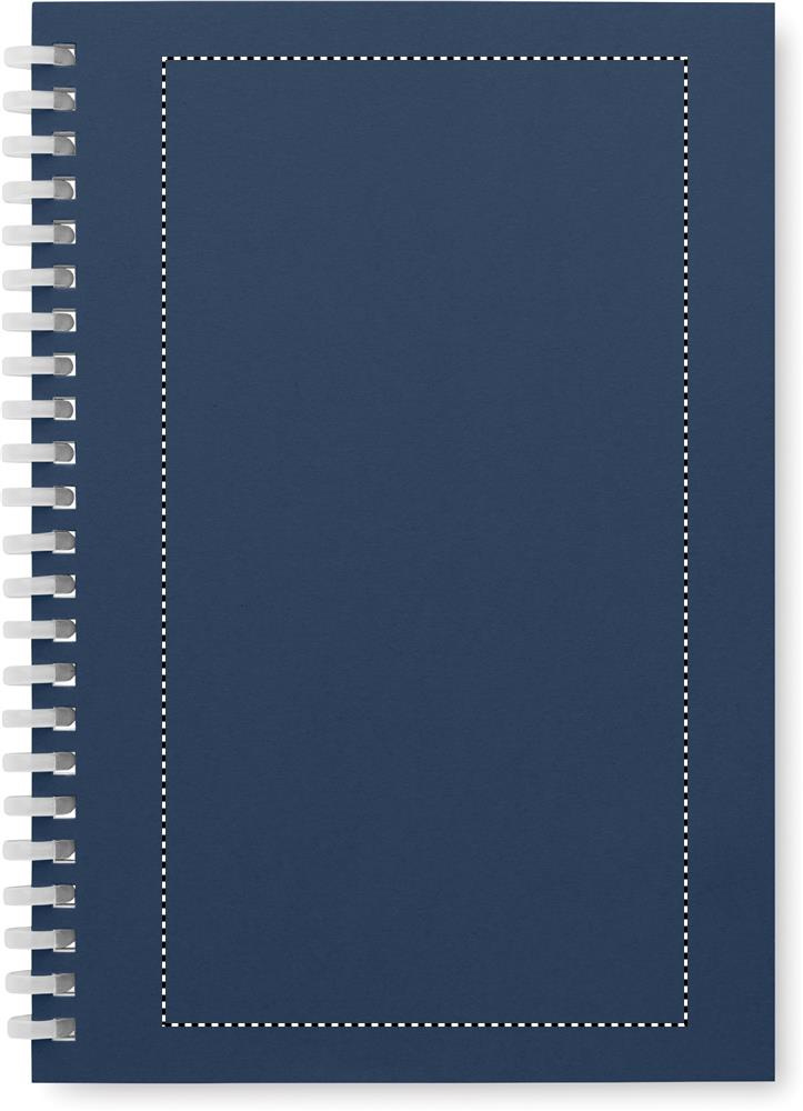 DIN A5 Notizbuch mit Cover aus recyceltem Karton. Weiche Kunststoff-Ringbindung. 80 Blatt (160 Seiten) liniertes Recyclingpapier.