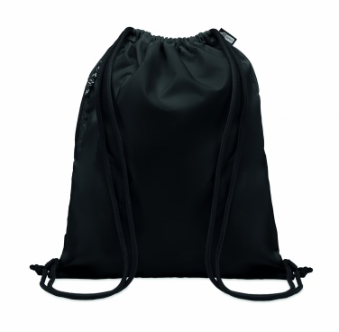 Großer Beutel mit Kordelzug. Seitliche Reißverschlusstasche. 300D RPET-Polyester