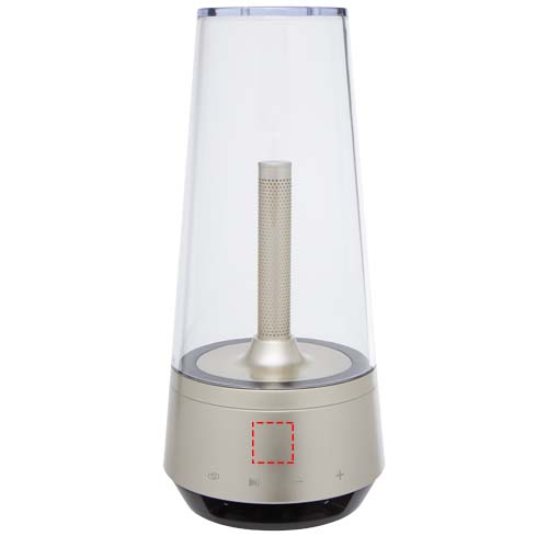 Leistungsstarker Bluetooth®-Lautsprecher mit 5 W Ausgangsleistung und attraktivem Design mit integriertem Kerzendimmer für eine romantische Atmosphäre. Der Artikel kann auch separat als Leuchte verwendet werden, wobei sich die Helligkeit durch Drehen des Gehäuses leicht regulieren lässt. Der eingebaute 1000 mAh-Akku sorgt für 2,5—5 Stunden Wiedergabezeit bei maximaler Lautstärke (je nachdem, ob der Dimmer eingeschaltet ist). Bluetooth® 5.1 mit einer Verbindungsreichweite von bis zu 10 Metern für eine stabile Verbindung und hochwertigen Klang. Geliefert in einer hochwertigen Kraftpapierbox mit buntem Aufkleber.