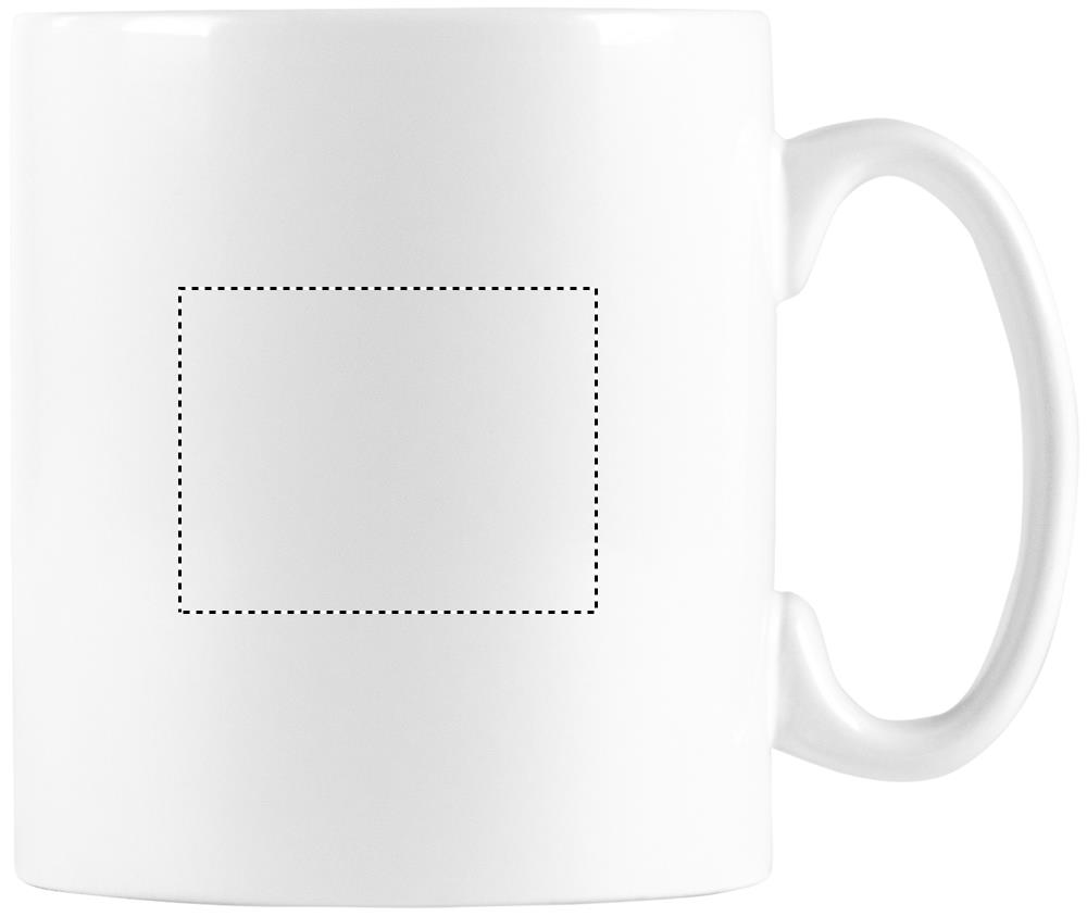 Kaffeebecher aus Keramik. Spezielle Beschichtung für Sublimationsdruck. Füllmenge: 300 ml. Verpackt in einem weißen Karton.