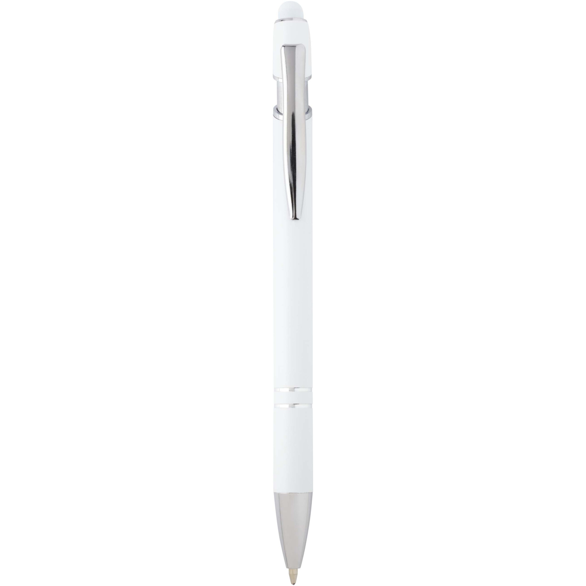 Der Kish Kugelschreiber in Silber hat einen Schaft aus recyceltem Aluminium und einen Stylus aus Silikon. Recyceltes Aluminium reduziert die Menge an Deponiemüll, schont die natürlichen Ressourcen und reduziert die Treibhausgasemissionen. Tintenfarbe: Blau. Schreiblänge: 800 Meter. Schreibspitze: 1 mm.