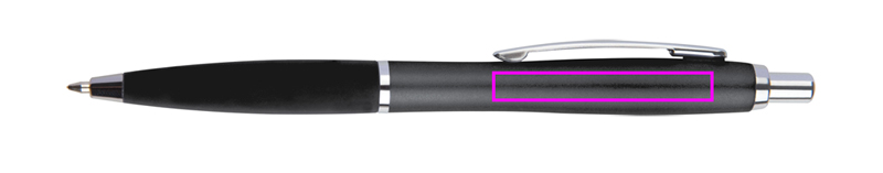Schlanker Kunststoff-Kugelschreiber mit blauschreibender Kunststoff-Mine und gummierter Griffzone. Ihre Werbung wird unterhalb des Clips aufgedruckt.