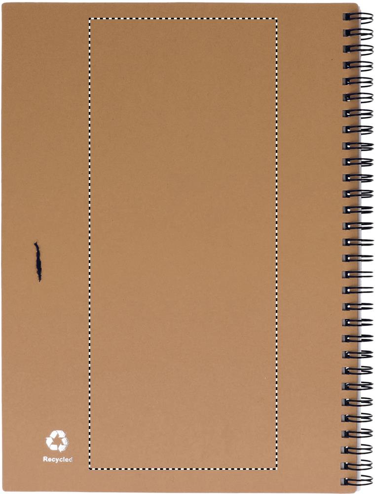 Notizbuch mit 70 Blatt (140 Seiten) recyceltem Blankopapier. Spiralbindung. Stiftschlaufe. Druckkugelschreiber aus recyceltem Karton mit Clip, Spitze und Drücker aus natürlich abbaubarem Kunststoff. Blaue Tinte.