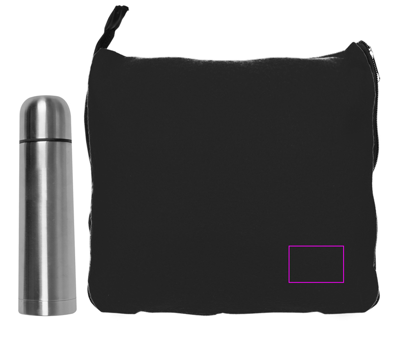 Perfektes Duo! Mit diesem schönen Set haben Ihre Kunden alles, was sie für einen kuscheligen Abend oder eine Reise brauchen. Sie erhalten eine schöne 2-in-1 Fleecedecke (180 x 120 cm), die sich durch den angebrachten Reißverschluss in ein Kissen verwandeln lässt und eine Thermosflasche mit 500 ml Inhalt. Ihre Werbung gravieren wir entweder auf die Flasche oder sticken wir auf die Decke. Einzeln im Karton verpackt.