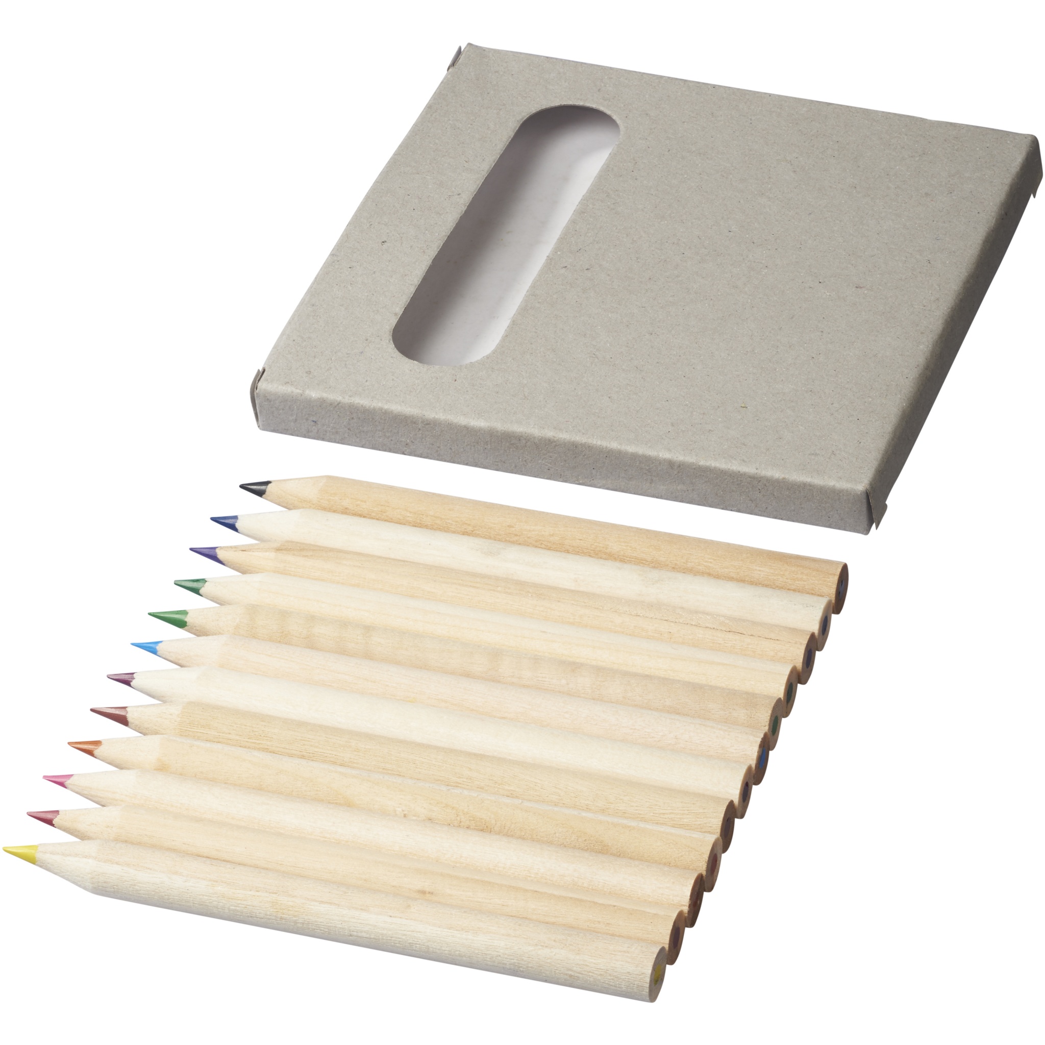 12 Buntstifte in einer Pappschachtel.