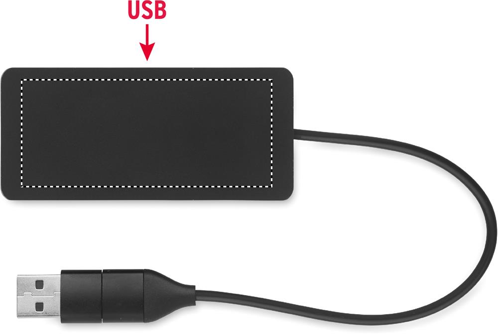 Charging cable in recycled aluminium. Output: 2 x Type-A and 1 x Type-C. Input:2-in-1 Type-C and Type-A. Cable length: 20 cm.