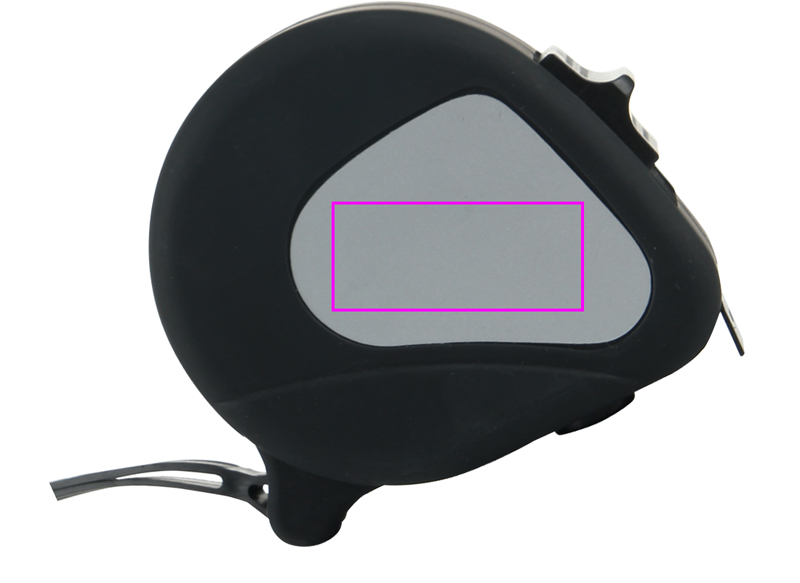 Steel tape measure with a measuring length of 5 meters, locking slide, quick release button and hand strap. The rubber finish ensures a particularly pleasant feel. We print your logo on the silver emblem.
