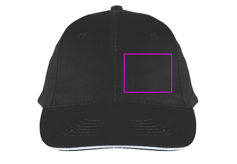 Sporty and trendy! 6-panel sandwich baseball cap made of heavy brushed cotton with a matt silver metal snap closure. The sandwich cap comes with a white stripe in the middle of the visor. This cap is very trendy and comes in high-quality heavy cotton. We will embroider your logo onto the front. The price for embroidery is per 1.000 stitches. Standard embroidery requires about 8.000 stitches.