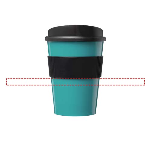 Single-wall tumbler with press-on lid and silicone grip. Volume capacity is 300 ml. Mug is fully recyclable. Mix and match colours to create your perfect mug. Made in the UK. Packed in a recycled PE plastic bag. BPA-free. EN12875-1 compliant, dishwasher safe, and microwave safe.