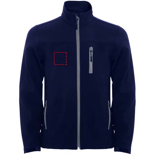 2-layer softshell. Inverted sealed effect zip with matching chin protector and zipper puller. Three zip pockets with matching puller. Velcro fasteners in cuffs. Adjustable bottom hem with elastic drawcord and stoppers. 1000 mm water resistant. Wind-proof fabric. The model is 129 cm and is wearing size 5/6.