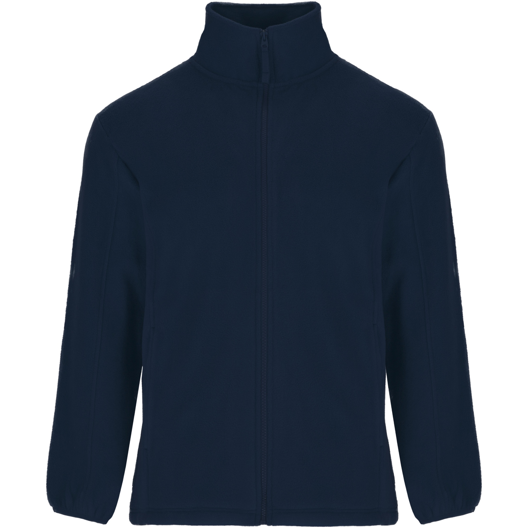 Fleece jacket with high lined collar and matching reinforced covered seams. Injected zip with matching puller made of fabric. Side pockets. Cuffs with elastic trim. Bottom hem with inner side adjusters. Removable label. The model is 115 cm and is wearing size 5/6.
