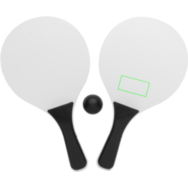 MDF beach ball set with PP handle. Packed in net including 1 ball.