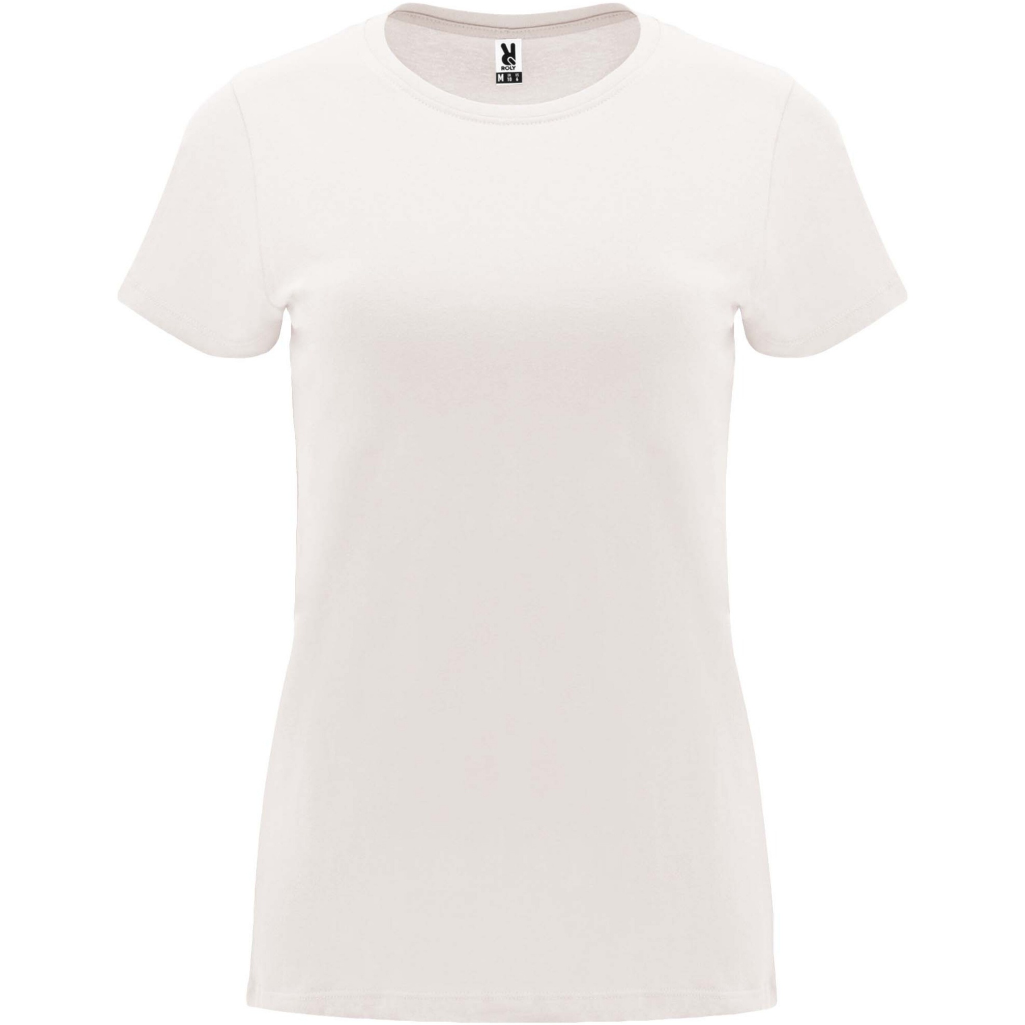 Fitted short-sleeve t-shirt for women. 1x1 ribbed crew neck. Reinforced covered seams in collar. Removable label.
