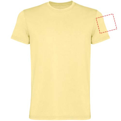 Short sleeve t-shirt for men. Acid-wash finish. 1x1 ribbed crew neck design. Tone-on-tone cover stitch with a polished finish.