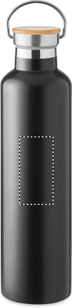 Double wall Stainless Steel insulating vacuum flask with bamboo lid and carry handle. Capacity: 1L. Bamboo is a natural product, there may be slight variations in colour and size per item, which can affect the final decoration outcome.