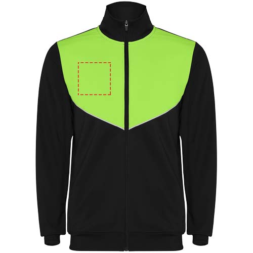 Tracksuit in lightweight and elastic fabric. Jacket with contrasting colour and sewing trims on the chest. High collar with contrasting seams. Center front zip. Side pockets. 2x2 ribbed cuffs and waist. Trousers with elastic waistband and drawstring. Contrasting side piece with sewing trim. Zipped hem.