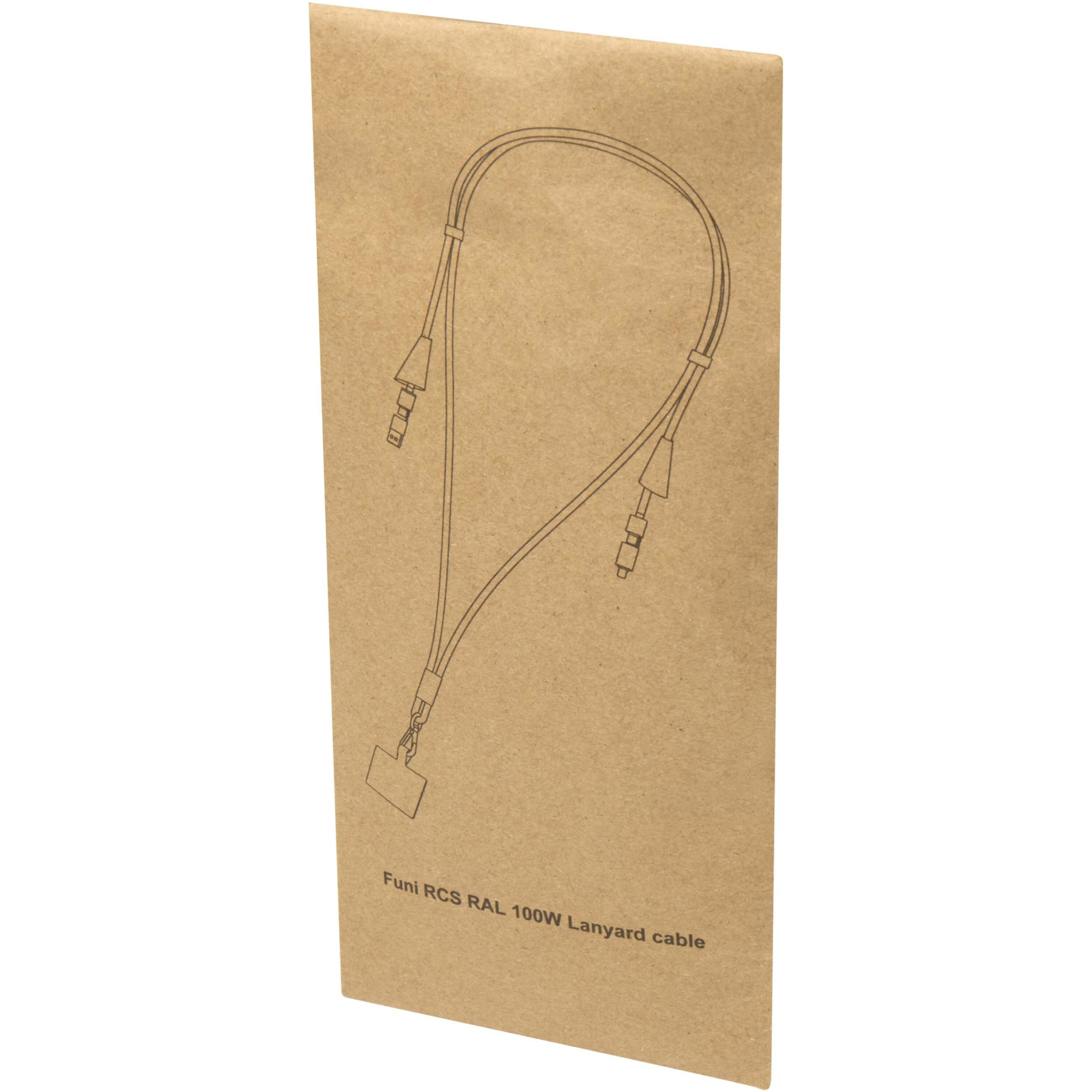The Funi is a stylish and practical lanyard made from recycled plastic. It features a built-in 100W fast charge and data sync 5-in-1 cable with Type-C and USB-A input connectors, and Type-C, Lightning, and microUSB output. This cable is powerful enough to quickly charge most laptops, tables and smartphones. Compatible with CarPlay and Android Auto, making it perfect for travel, work, or everyday use.