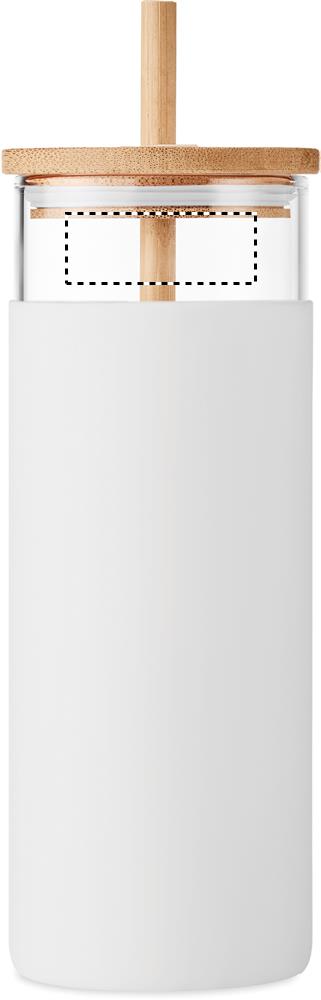 Borosilicate glass tumbler with silicone protective sleeve and with bamboo lid and straw. Capacity: 450ml. As this is a single wall mug heat transfer can still occur. Bamboo is a natural product, there may be slight variations in colour and size per item, which can affect the final decoration outcome.
