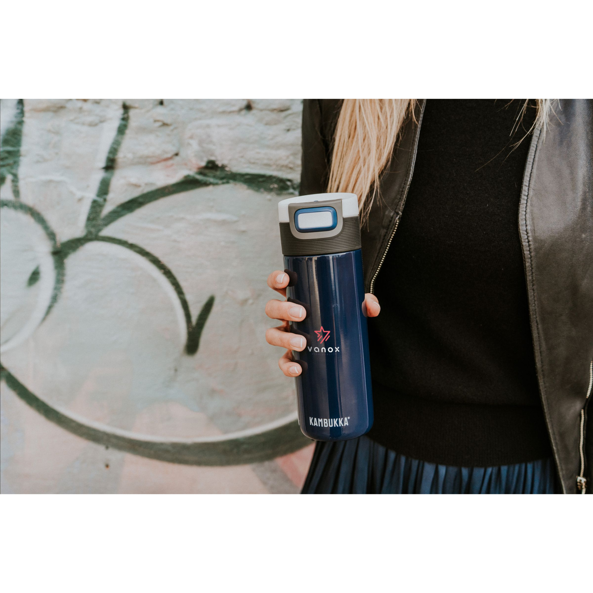 The ideal thermo bottle for when you’re on the go made by Kambukka® • excellent quality • beautiful design • handy size • vacuum insulated 18/8 RVS • BPA-free • keeps drinks hot for up to 9 hours and cold for up to 18 hours • 3-in-1 lid with 2 drinking positions: just press to take a quick sip, or open it completely to drink just as comfortably as from a mug, without spilling • easy to clean thanks to Snapclean®: just pinch and pull to remove the inner, dishwasher-safe mechanism • universal lid: also fits on other Kambukka® drinking bottles • the lid is heat-resistant and dishwasher-safe • non-slip base • 100% leakproof • capacity 500 ml. STOCK AVAILABILITY: Up to 1000 pcs accessible within 10 working days plus standard lead-time. Subject to availability.