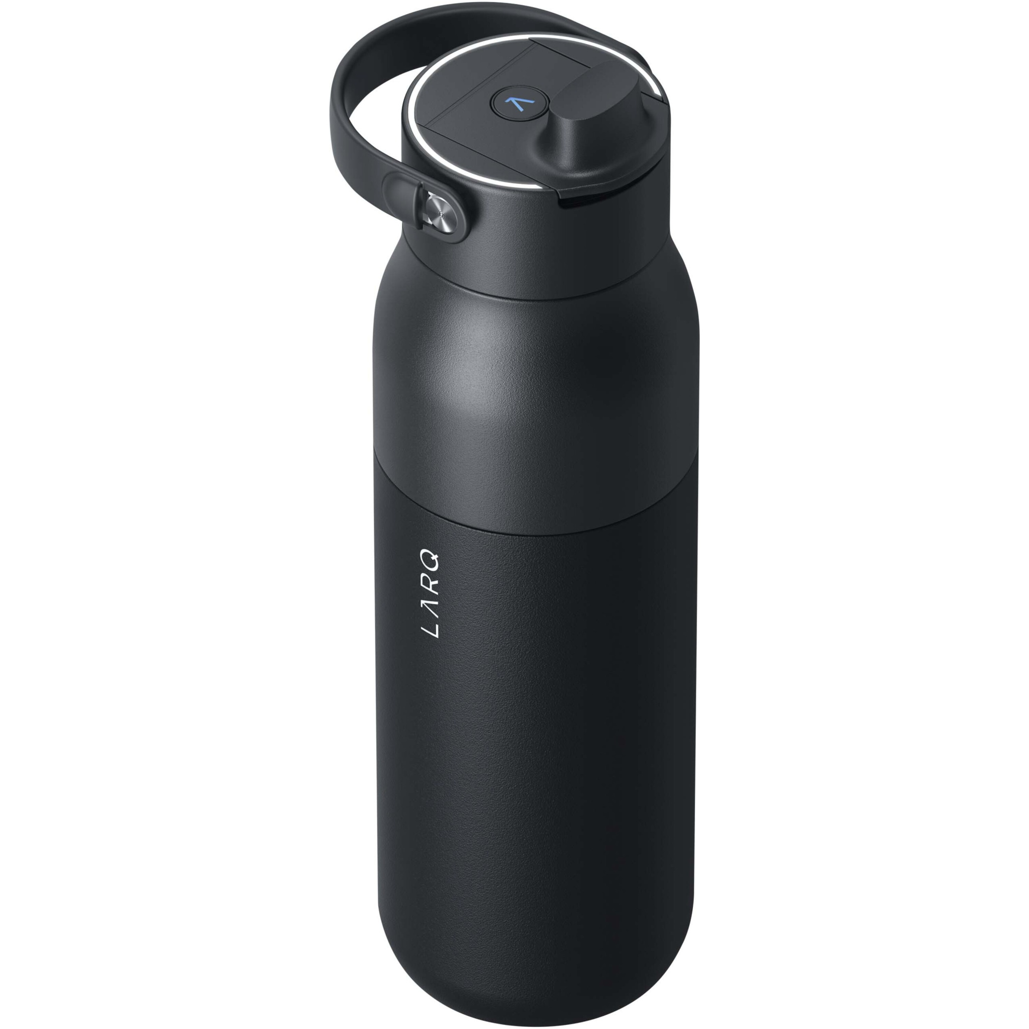 The LARQ PureVis™ 2.0 water bottle is a 1000 ml all-in-one self-cleaning and water-filtering bottle with smart hydration tracking. It enhances water quality through a 2-stage filtration and UV-C purification process, delivering cleaner, better-tasting water. The UV-C LED in the cap activates automatically every two hours to keep the bottle clean and odour-free, or you can manually start a PureVis™ cycle at the touch of a button. With a long-lasting battery, the bottle runs for up to 2-3 weeks on a full charge via the USB-C port. The cap features a built-in, detachable soft-touch handle for convenient carrying. Smart sensors track your water intake automatically, while the LARQ app provides insights and progress. Filters should be replaced regularly for optimal performance.