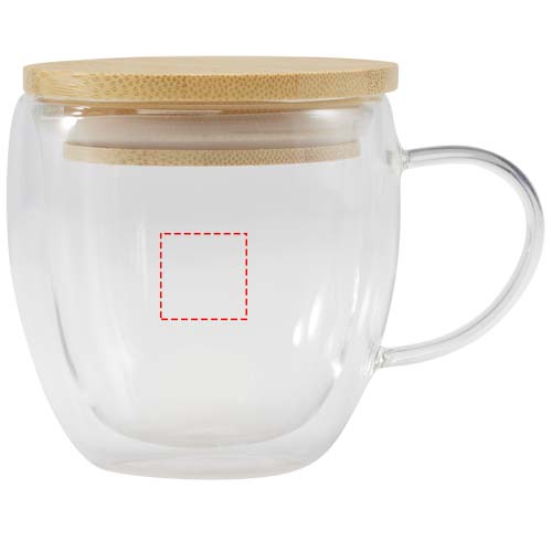 250 ml double-walled glass cup providing insulation, keeping drinks warm for longer. The included bamboo lid provides additional insulation, helps prevent spills and preserve the drink’s aroma, making it a practical choice for daily use.