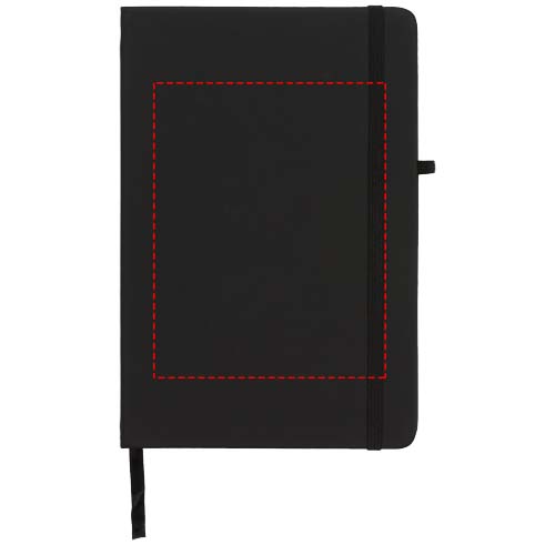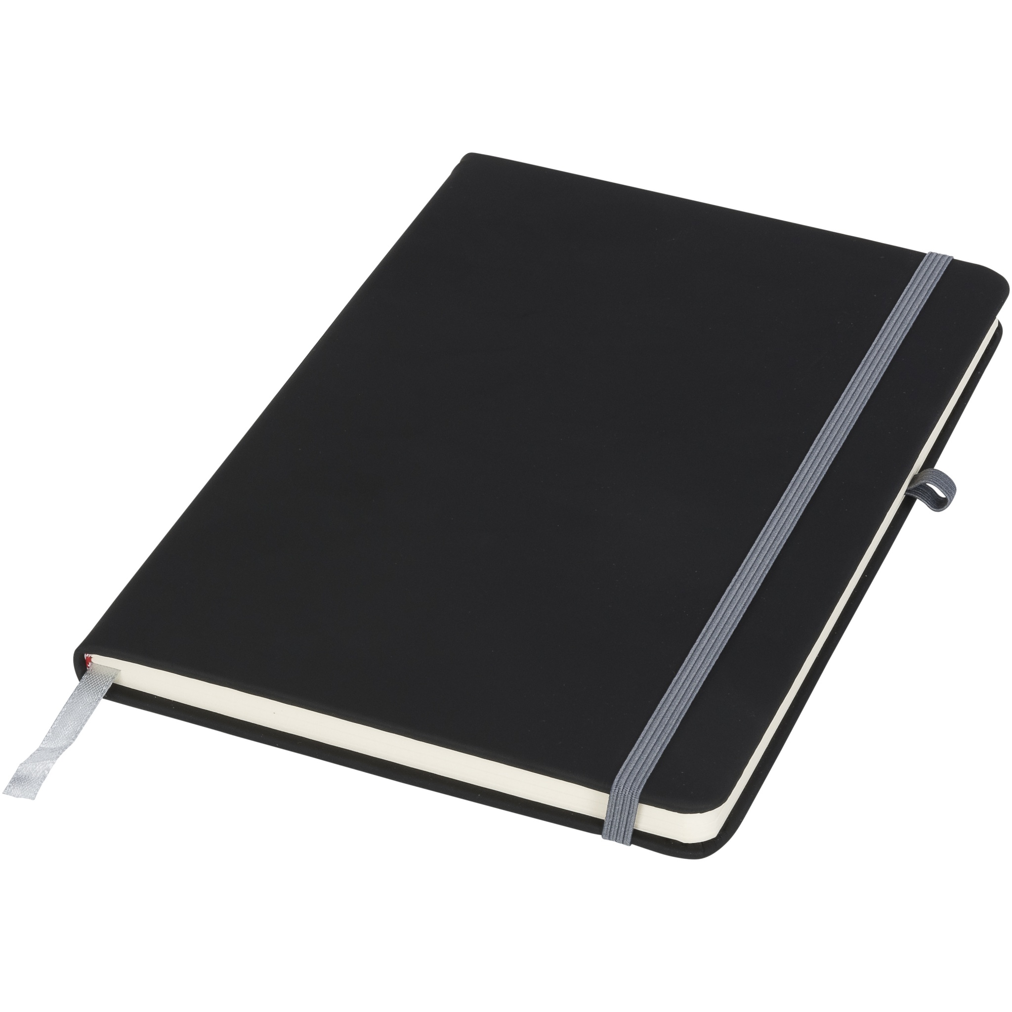 The Noir notebook has a soft-feel black PU cover, for creating a tactile finish to the notebook. Each notebook has a coloured closure strap, pen loop and ribbon page marker. The notebook contains 96 sheets (70g/m2) cream lined paper.
