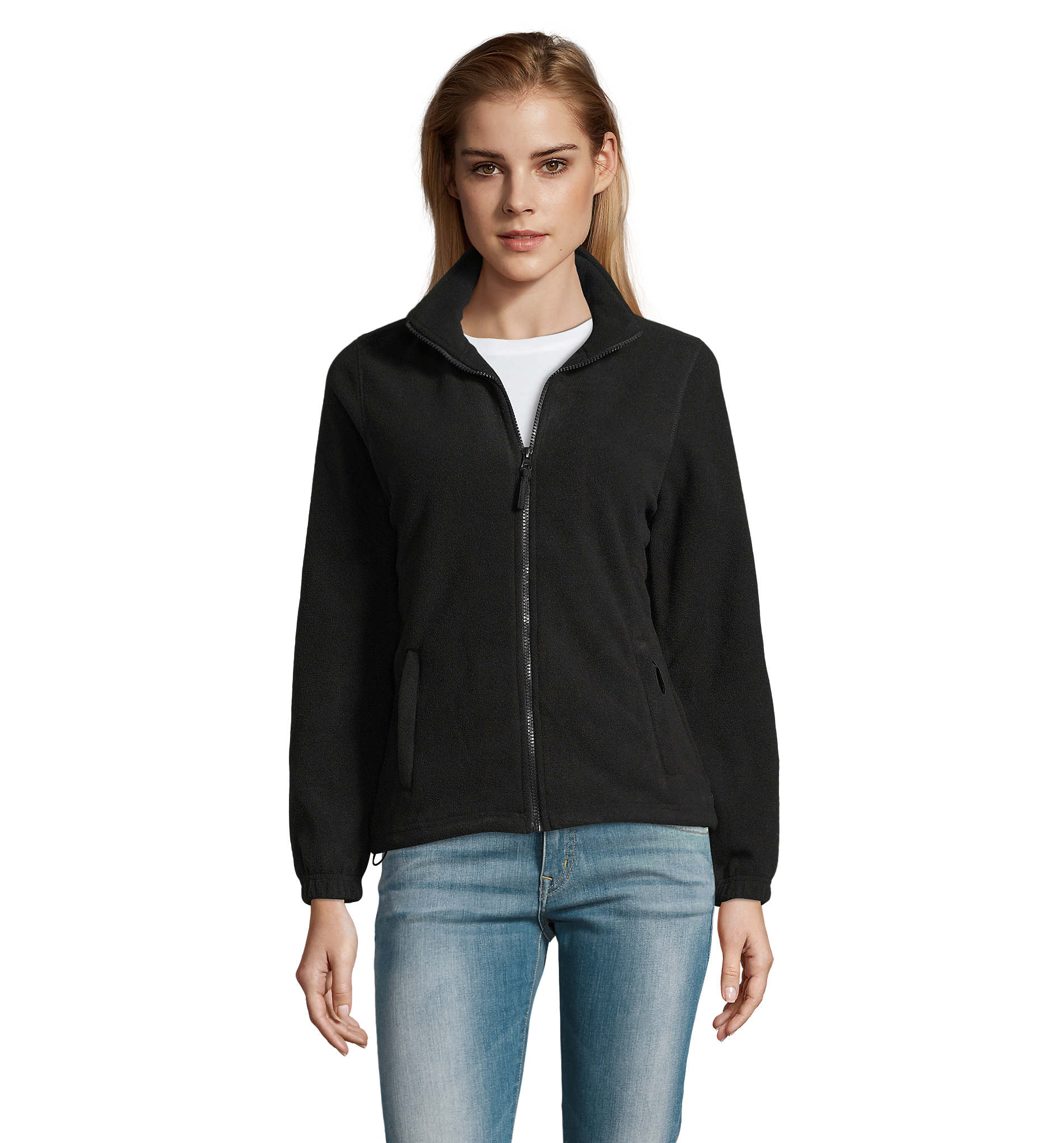 SOL'S NORTH WOMEN, WOMEN'S ZIPPED FLEECE JACKET, 100% polyester high density FLEECE 300, Short cut, Anti-pilling, Reinforcing tape on neck, High lined collar, 2 zipped pockets with flap, Fitted cut, Elasticated cuffs, Back half moon yoke, Elasticated drawstring at bottom. About sizes matching, please refer to the size chart in the product documentation section.