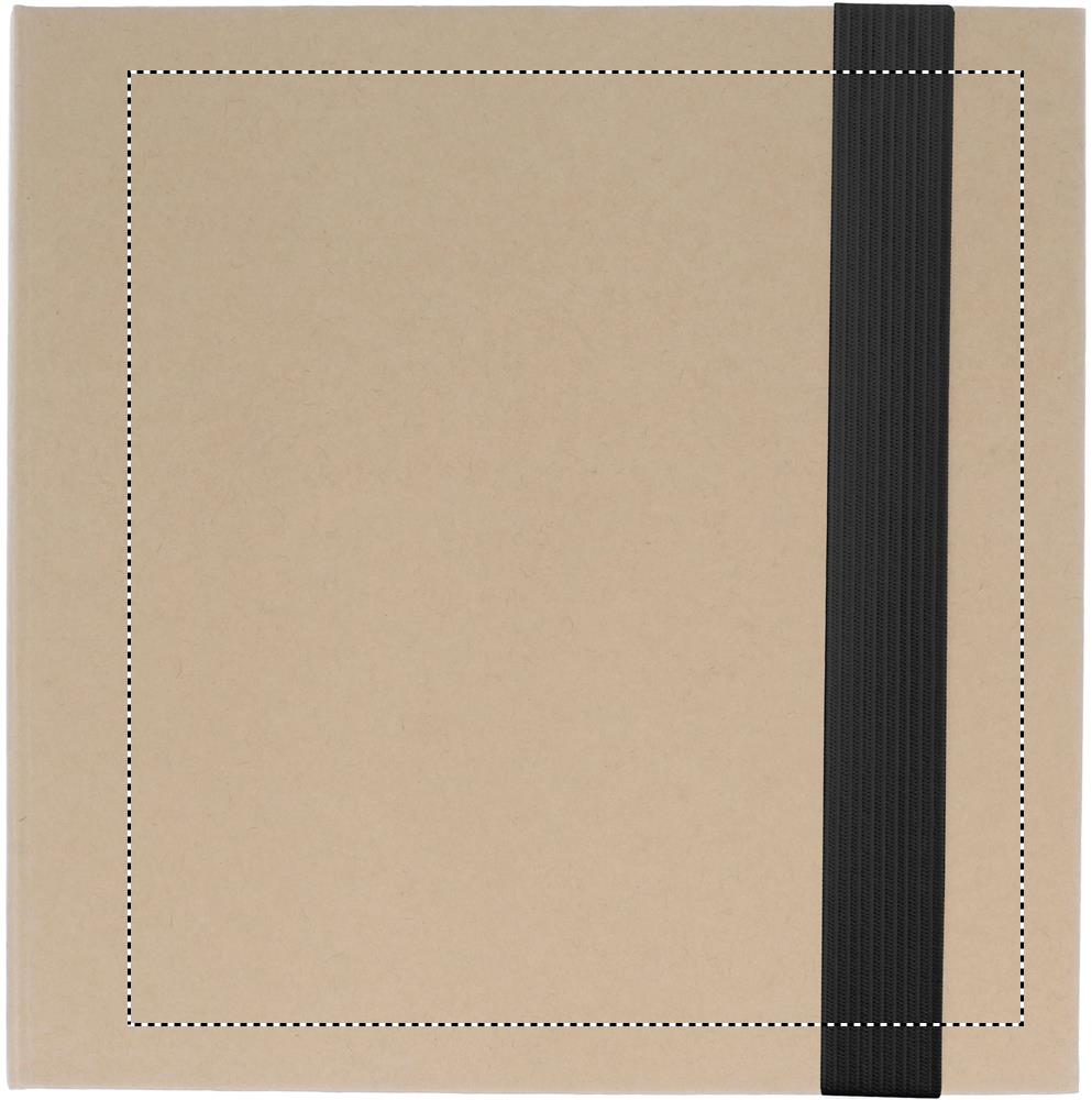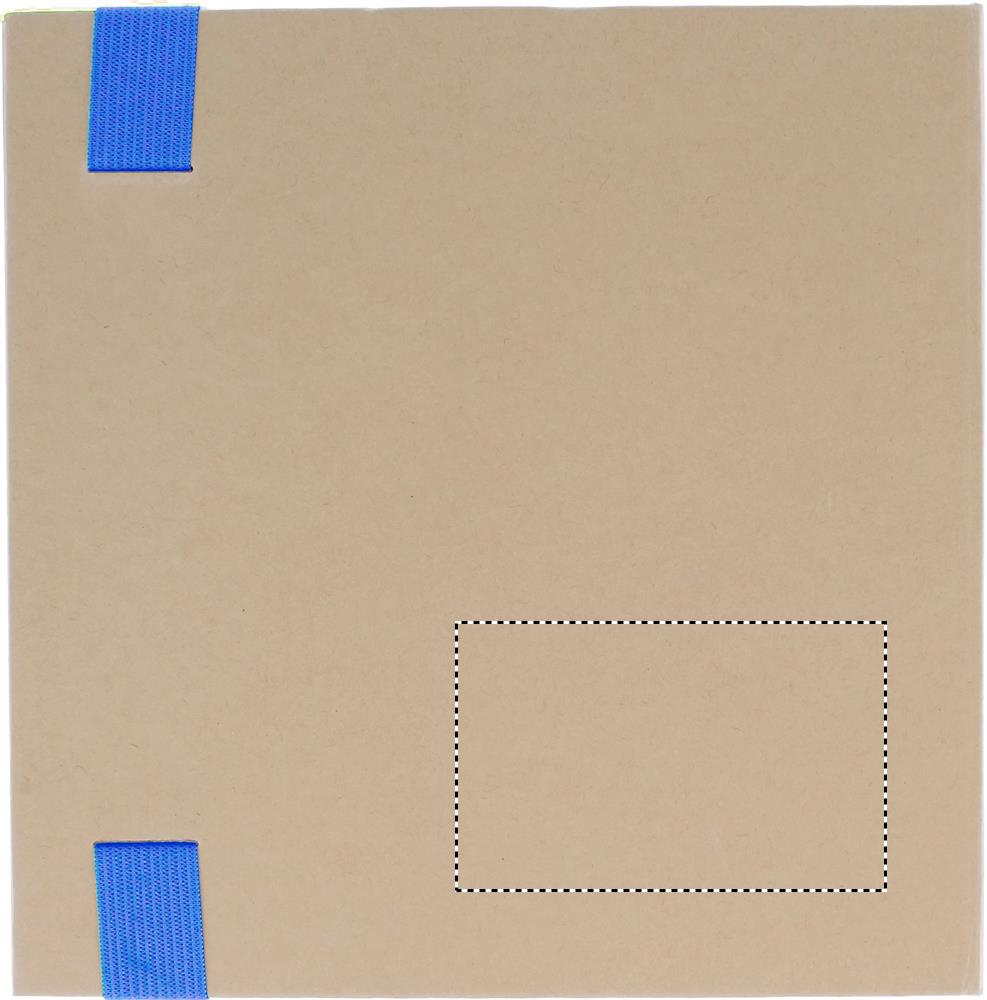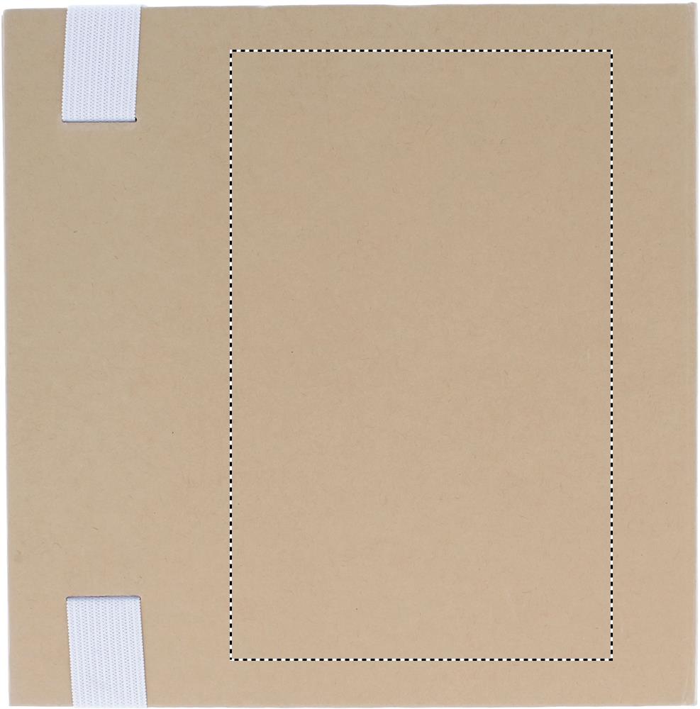 Notebook wit recycled carton cover. 100 plain sheets notepad. 3 piece sticky note memo pad. Large and medium yellow sticky notes pads and 5 assorted colours page markers. Matching push button ball pen with paper barrel. Pen holder. Elastic band closeure.