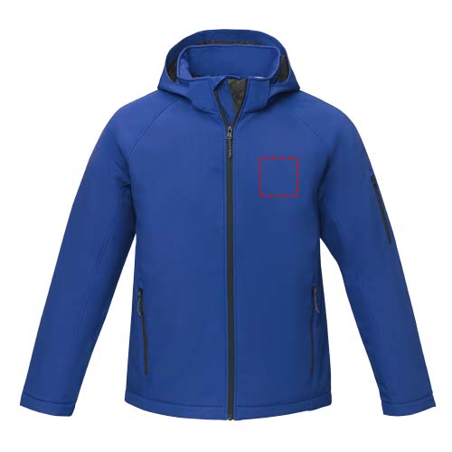 The Notus men's padded softshell jacket – a perfect blend of style, functionality, and comfort. Designed with a modern look, this jacket features a detachable hood with snap buttons, allowing you to customise your look effortlessly. The tearaway-cutaway main label ensures tagless comfort against your skin. Facing the elements is a breeze with the centre front contrast reversed coil zipper and inner storm flap with chin guard. Essentials are kept secure in the front pockets with zippers and a convenient sleeve pocket with zipper. When in need of more storage there is also an inner mesh pocket. Made of 250 g/m² polyester mechanical stretch with a polyester taffeta lining, that does not only provide optimal padding and filling but also features an eye-catching pattern. With the Notus padded softshell jacket you don't have to compromise on either style or performance.