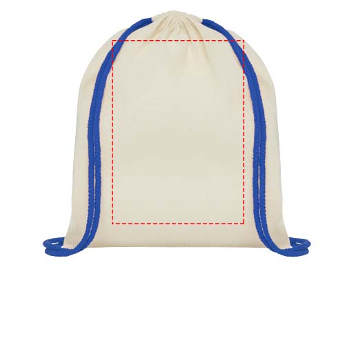 Oregon 100 g/m² cotton drawstring bag with coloured cords 5L, Natural / Royal blue