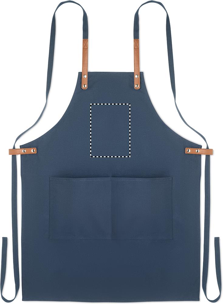 Adjustable kitchen apron with 2 front pockets in 340 gr/m² organic cotton/canvas. Presented in individual box.