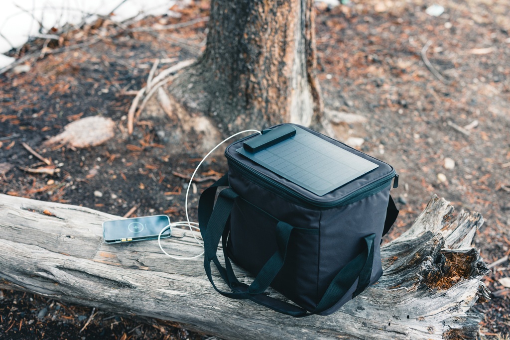 Products Home Pedro AWARE™ RPET deluxe cooler bag with 5W solar panel