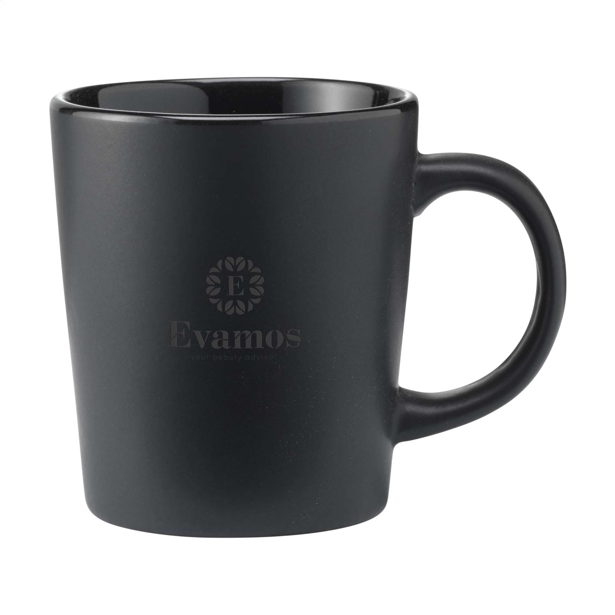Distinctive mug with an attractive design: Made of high-quality ceramics and with a matt top layer. Capacity 250 ml. NOTE: The white mug cannot be laser engraved because it is not sufficiently visible. The imprint is tested and certified dishwasher-safe: EN 12875-2.