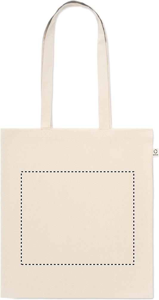 Recycled pre-consumer cotton shopping bag (70% recycled cotton and 30% RPET) with long handles. 140 gr/m².