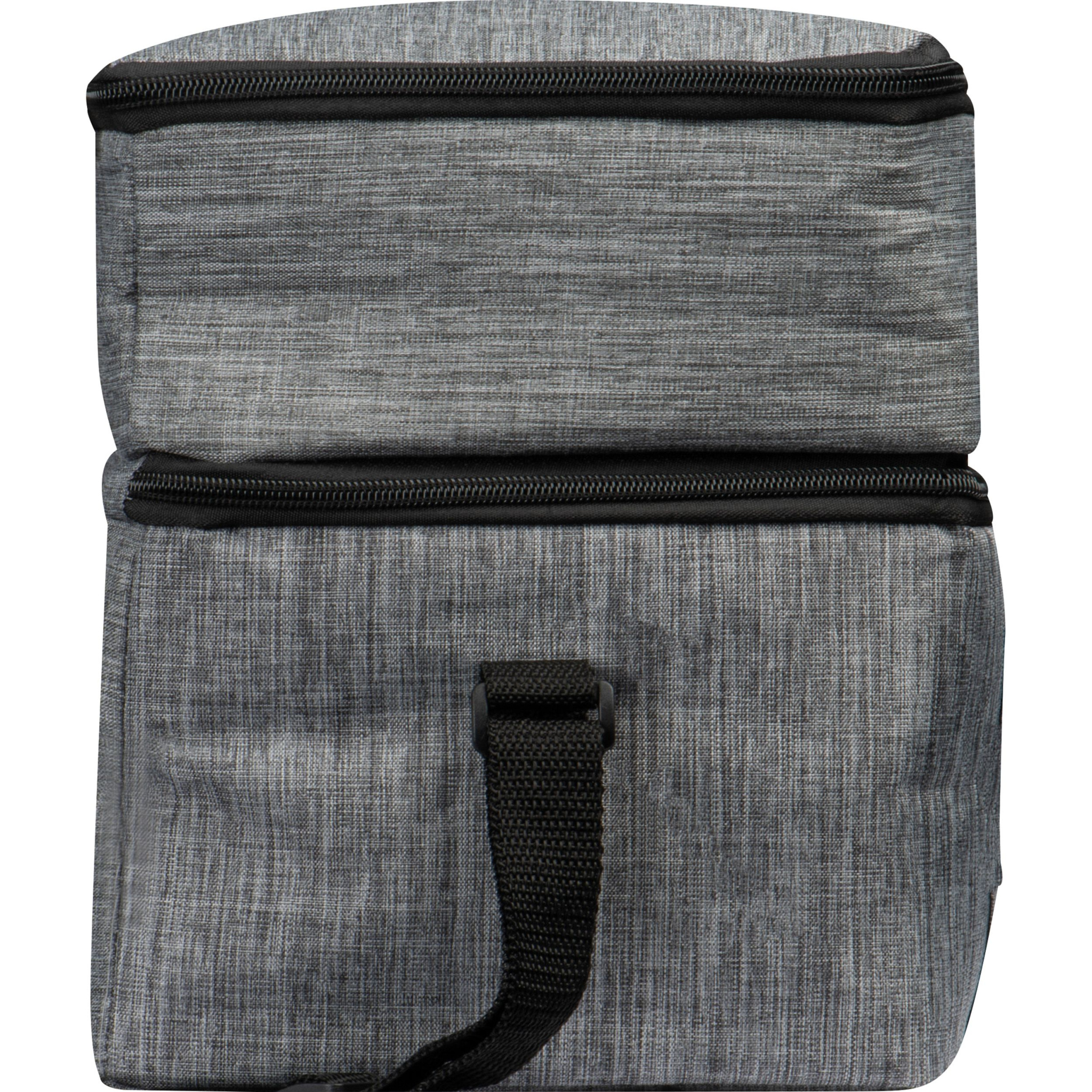 RPET cooler bag with 2 separate PEVA cooler compartments and a front pocket. Thanks to the shoulder strap, the cooler bag is perfect for all situations, whether shopping, a day at the beach or on vacation. We will print your logo on the bag.