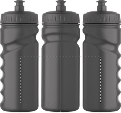 Sports drinking bottle with convenient handgrip in solid PE plastic. Capacity: 500 ml. Leak free.