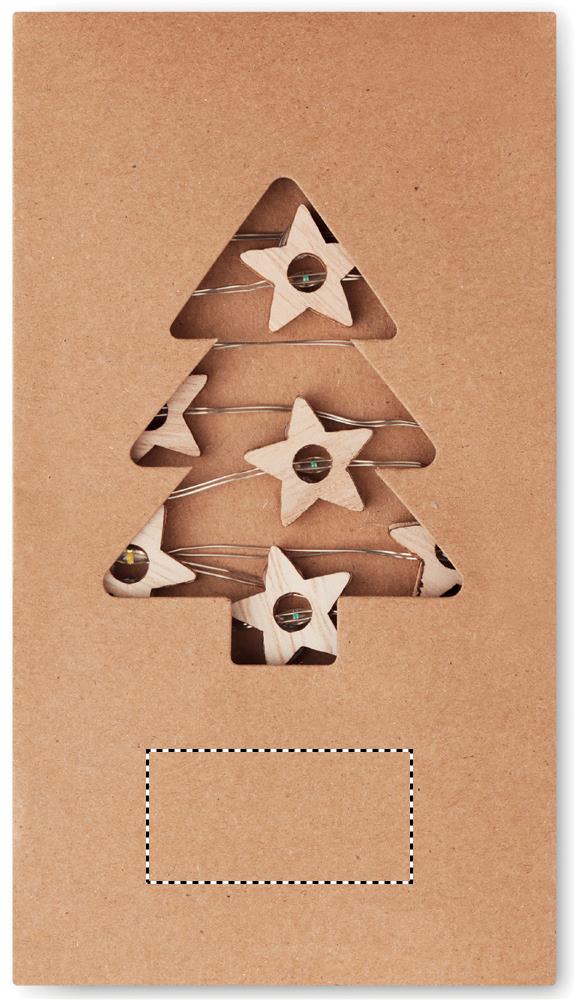 String with 20 LED lights in wooden star shape. Presented in carton box. 2 AA batteries not included. On/off button in battery case.