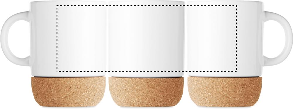 Ceramic mug with special coating for sublimation print and cork base detail. Individual packing in white carton box. Capacity: 300 ml Cork is 100% natural material. Due to its structural nature and surface porosity the final print result per item may have deviations.