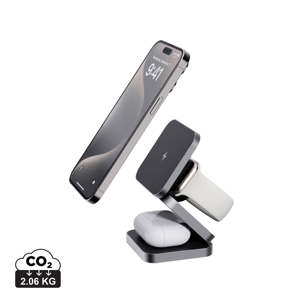 Terra RCS recycled aluminum foldable 3 in 1 15W charger, grey