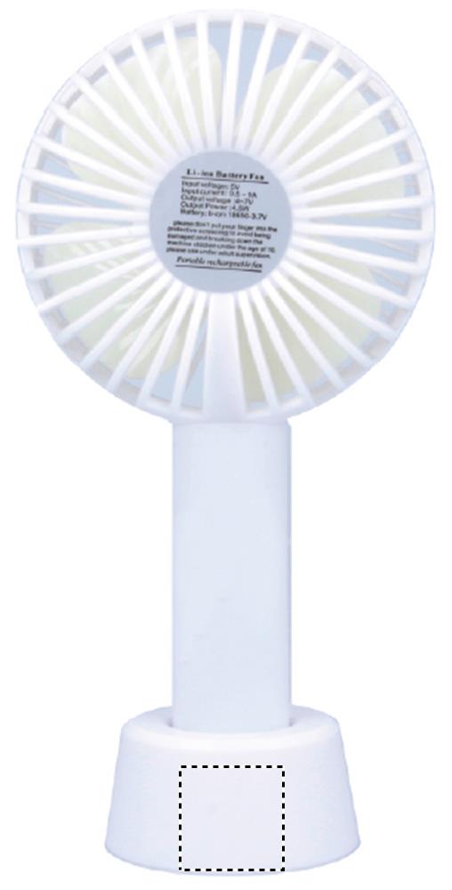 Small portable fan with additional stand to use as desk fan. 3 speed settings. USB port rechargeable battery 2000 mAh.