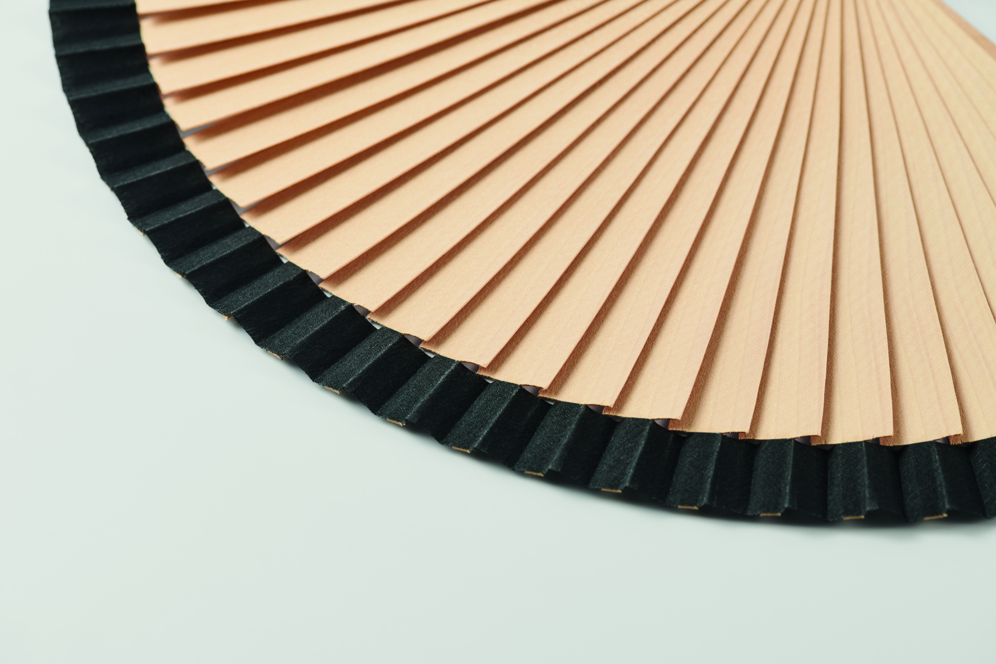 Wooden hand fan made of Schima Superba wood and polyester with 34 ribs. Elegant design.