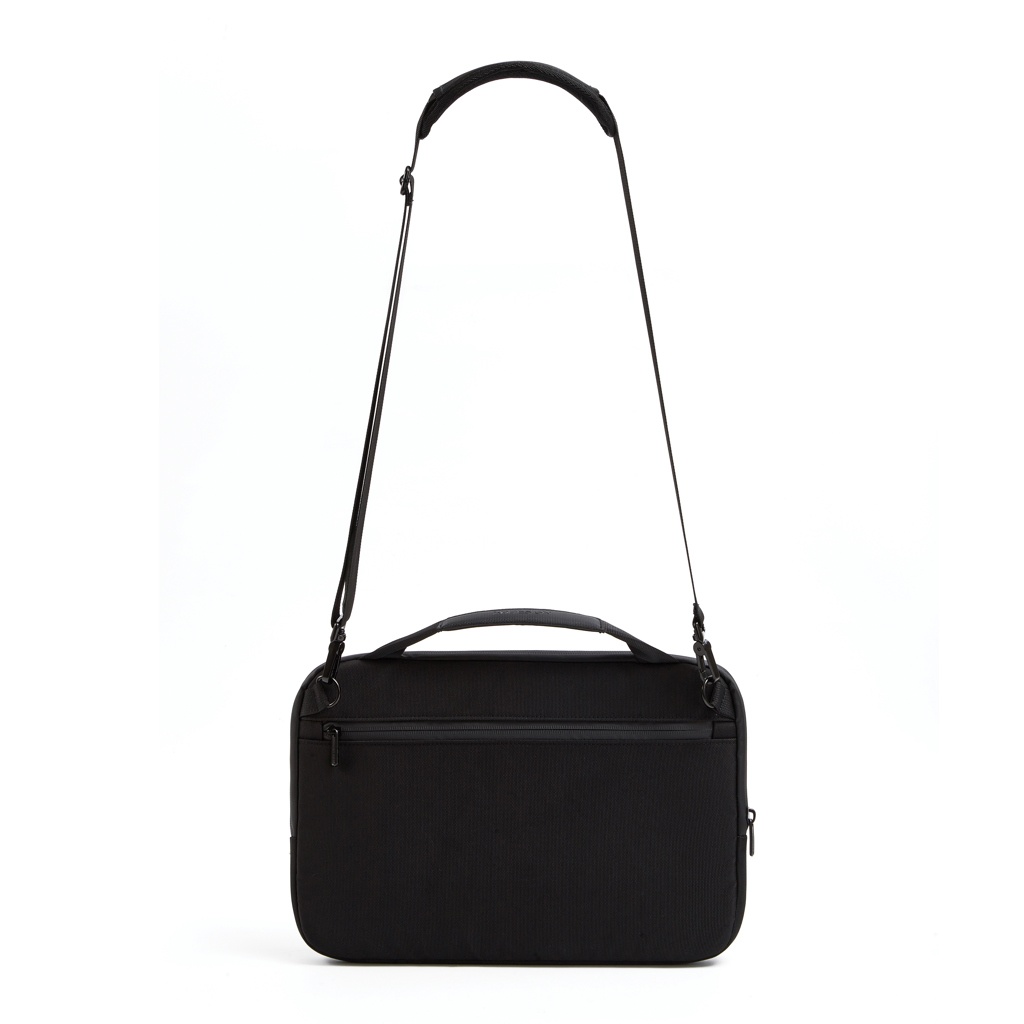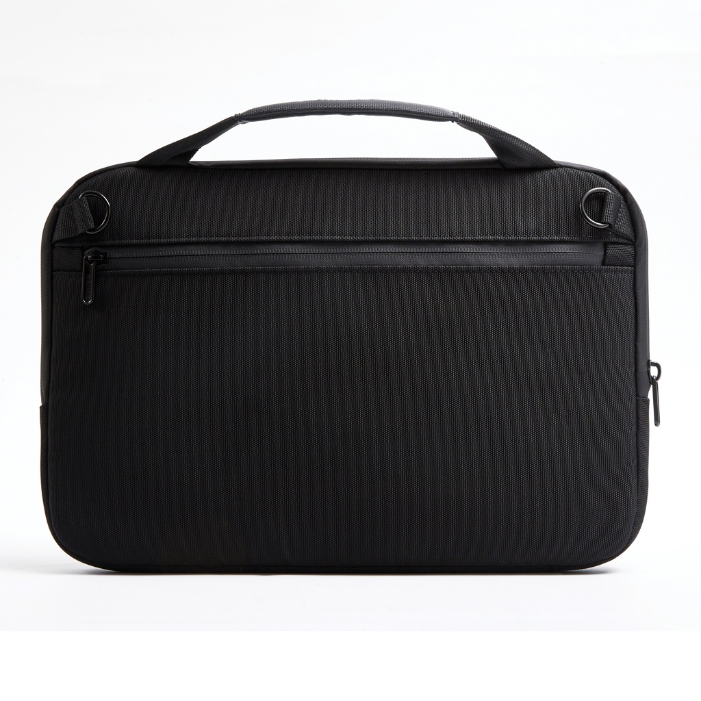 The XD Design 14" Laptop Bag offers reliable laptop protection. Crafted from R-pet 1200D fabric and textured PU, it features a water-repellent finish. The top handle and shoulder strap provide versatile carrying options, while the rear pocket offers convenient storage for essential items. The waterproof zipper and textured fleece lining add an extra layer of resilience. Made from R-pet fabric with the AWARE™ tracer. With AWARE™, the use of genuine recycled fabric is guaranteed. 17% recycled content.