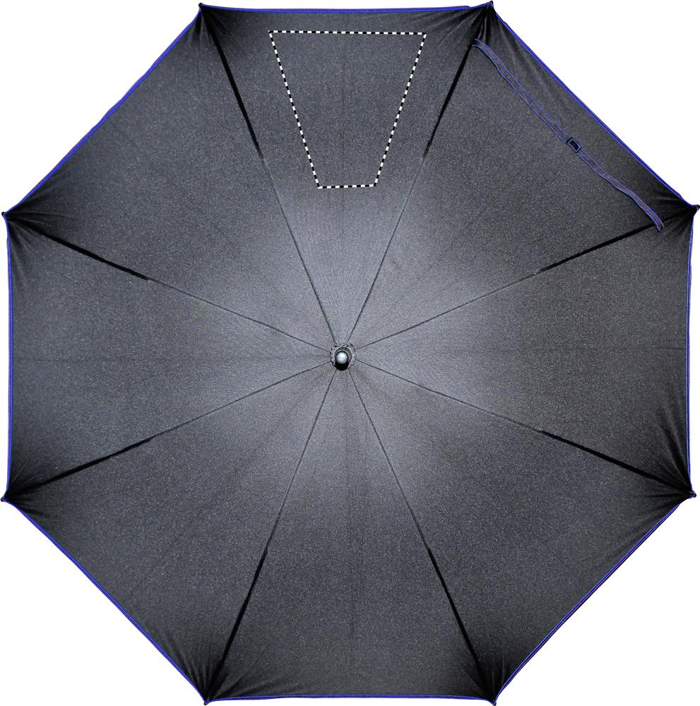 23-tolline automaatselt avatav tuulekindel vihmavari 190T pongee klaaskiust varre ja mustade plastikotstega ribidega. Musta värvi paneelid sobivat värvi õmblustega. Sirge must plastikust käepide. Käsitsi sulgemine.
