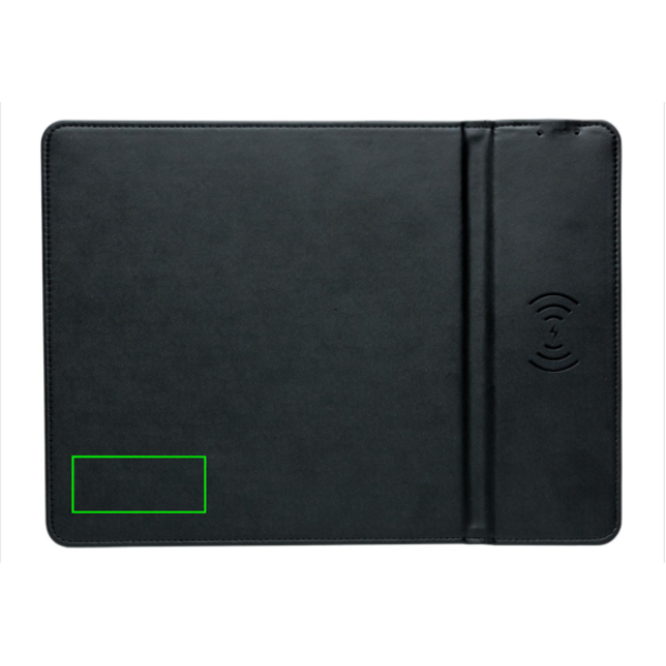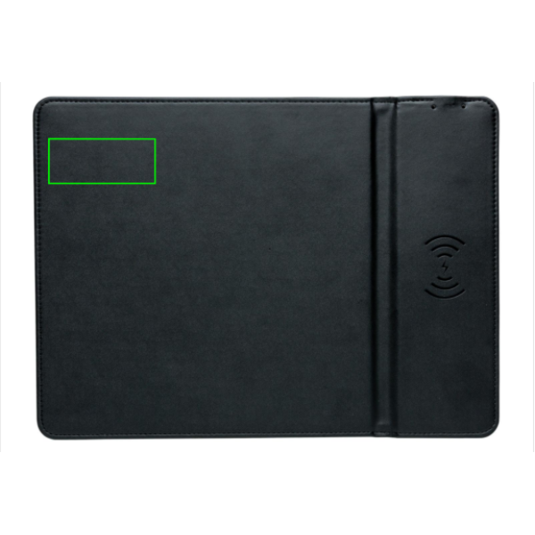 PU-hiirepadi integreeritud juhtmevaba laadimispadjaga, et laadida kõiki mobiilseadmeid, mis toetavad juhtmevaba laadimist (Androidi uusimad põlvkonnad, iPhone 8 ja uuemad). Juhtmeta laadimisosa saab kasutada ka teie mobiilseadme alusena. Kaasas 40 cm mikro-USB kaabel hiireplaadi ühendamiseks arvuti USB-porti. Sisend: 5V/1A. Juhtmeta väljund: 5V/1A 5W.