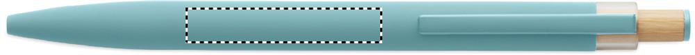 Taaskasutatud alumiiniumist pastapliiats bambusest nupuga ja metallklambriga. Sinise tindiga.