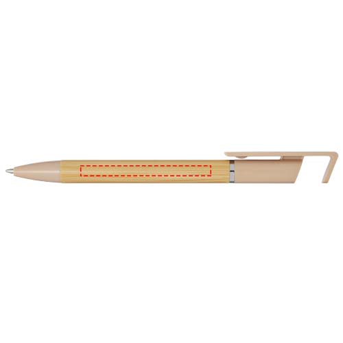 Bambusest pastapliiats, mis toimib ka telefonihoidjana. Nupp ja keskrõngas on valmistatud taaskasutatud plastikust, ots on valmistatud messingist ja silinder on valmistatud vastutustundlikult hangitud bambusest. Tindi värvus: sinine. Kirjutamise pikkus: 1000 meetrit. Otsa suurus: 1,0 mm.